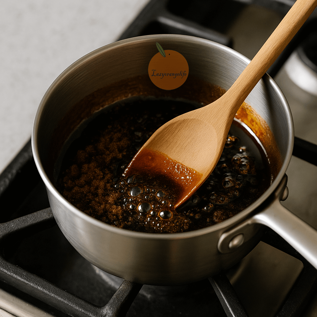 將黑糖與少量水(約1~2大匙)放入小鍋中,小火加熱並持續攪拌,直到黑糖完全融化,呈現濃稠狀態,即為黑糖漿。
