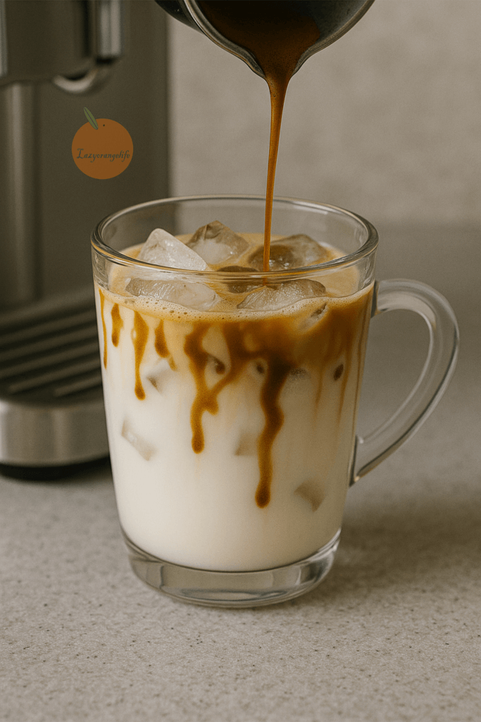 將黑糖漿沿杯壁緩緩倒入,形成漂亮的「黑糖拉絲」效果,讓整杯飲品更有視覺層次。