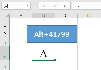 按下「Alt」鍵不放,並依序按下數字鍵「41799」,再放掉「Alt」鍵即會輸入出「Δ」符號。