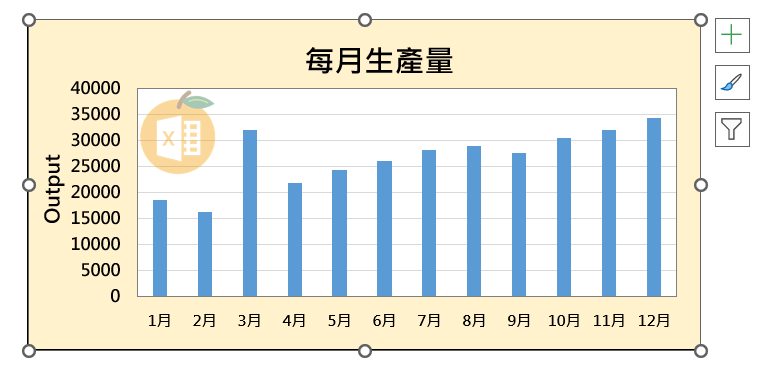 - 圖表的資料來源不會改變,數據仍保留原本設定