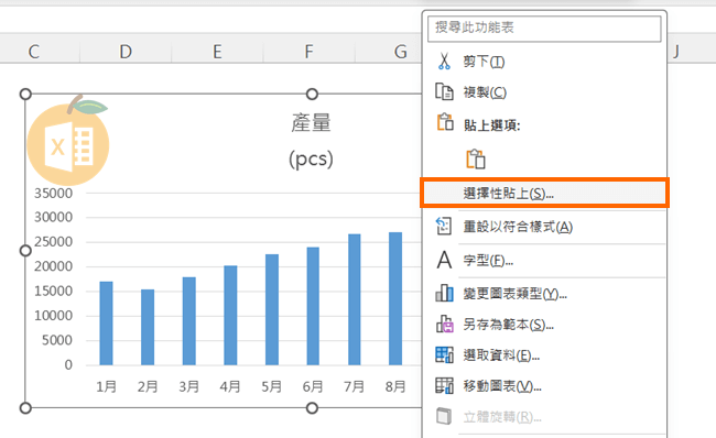 2️⃣ 在目標圖表(你要套用格式的圖表)上點右鍵 → 選擇【選擇性貼上】