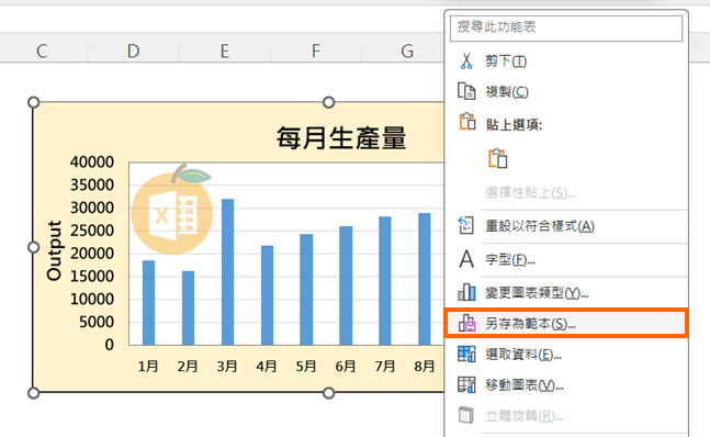 1️⃣ 右鍵點選你已設計好的圖表 → 選擇【另存為範本】