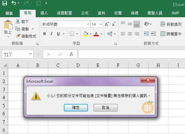 當編寫VBA完成要存檔時,卻跳出了 “小心!您的部份文件可能包含「文件檢查」無法移除的個人資訊。“