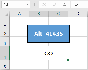 按下「Alt」鍵不放,並依序按下數字鍵「41435」,再放掉「Alt」鍵即會輸入出「∞」符號。