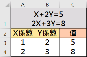 如解二元一次聯立方程式X+2Y=5;2X+3Y=8。