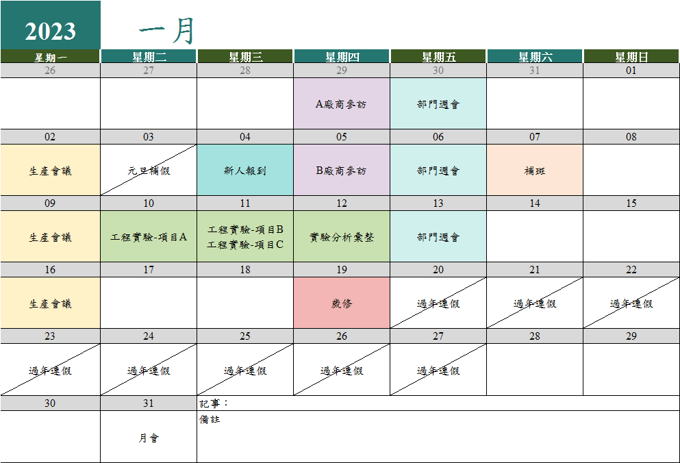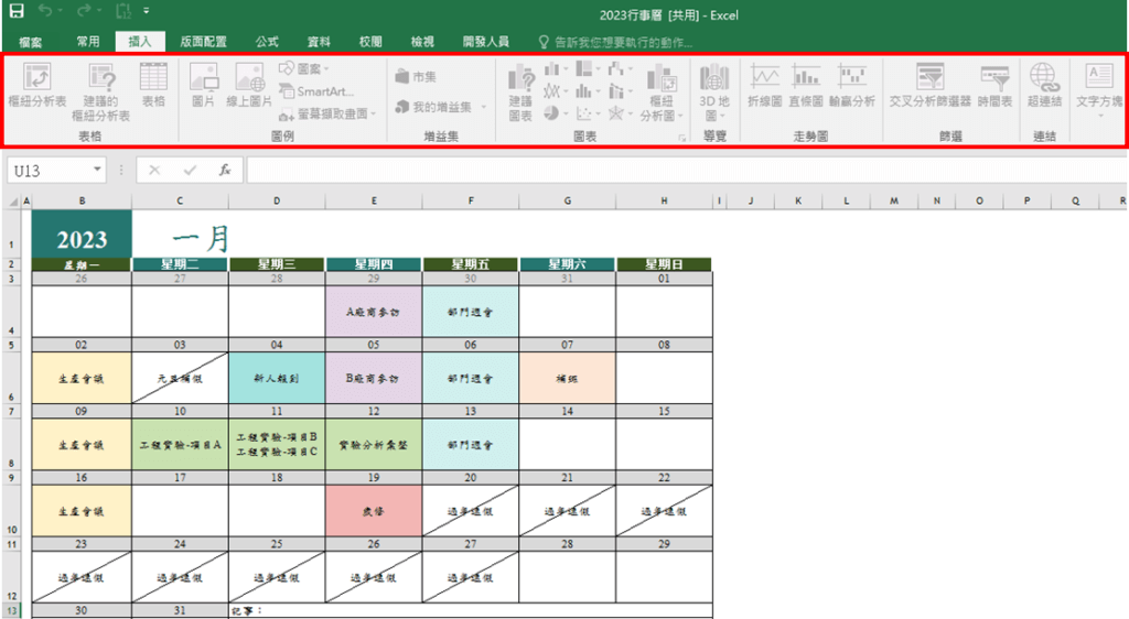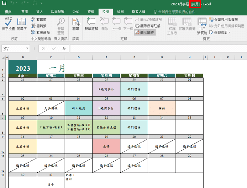 如:將「行事曆」等共享資料放入資料夾內,好讓大家可以同時看得到且進行編輯。