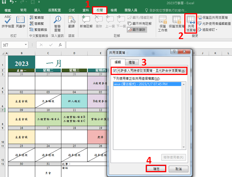 Excel要如何改成共用活頁簿,讓大家可以同時編輯呢?