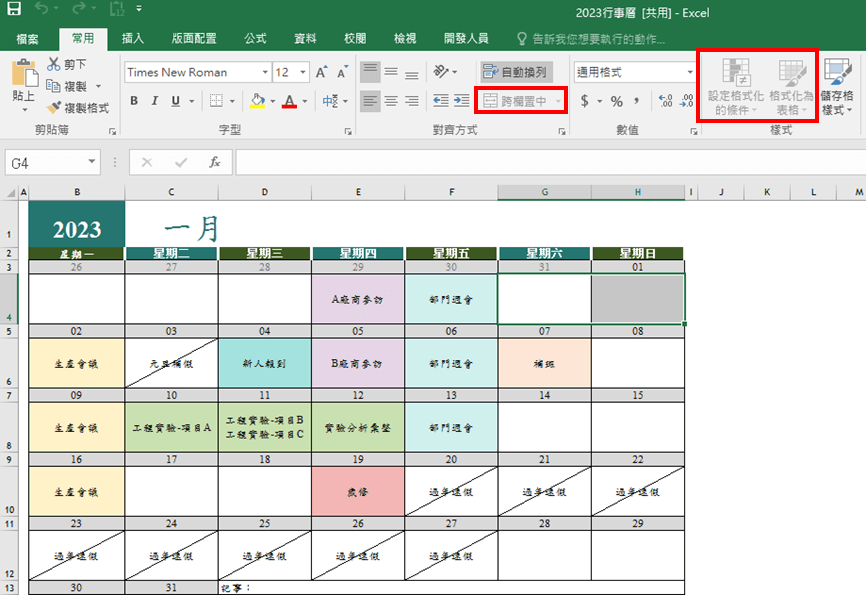 無法「合併儲存格(跨欄置中)」,無法「設定格式化的條件」。