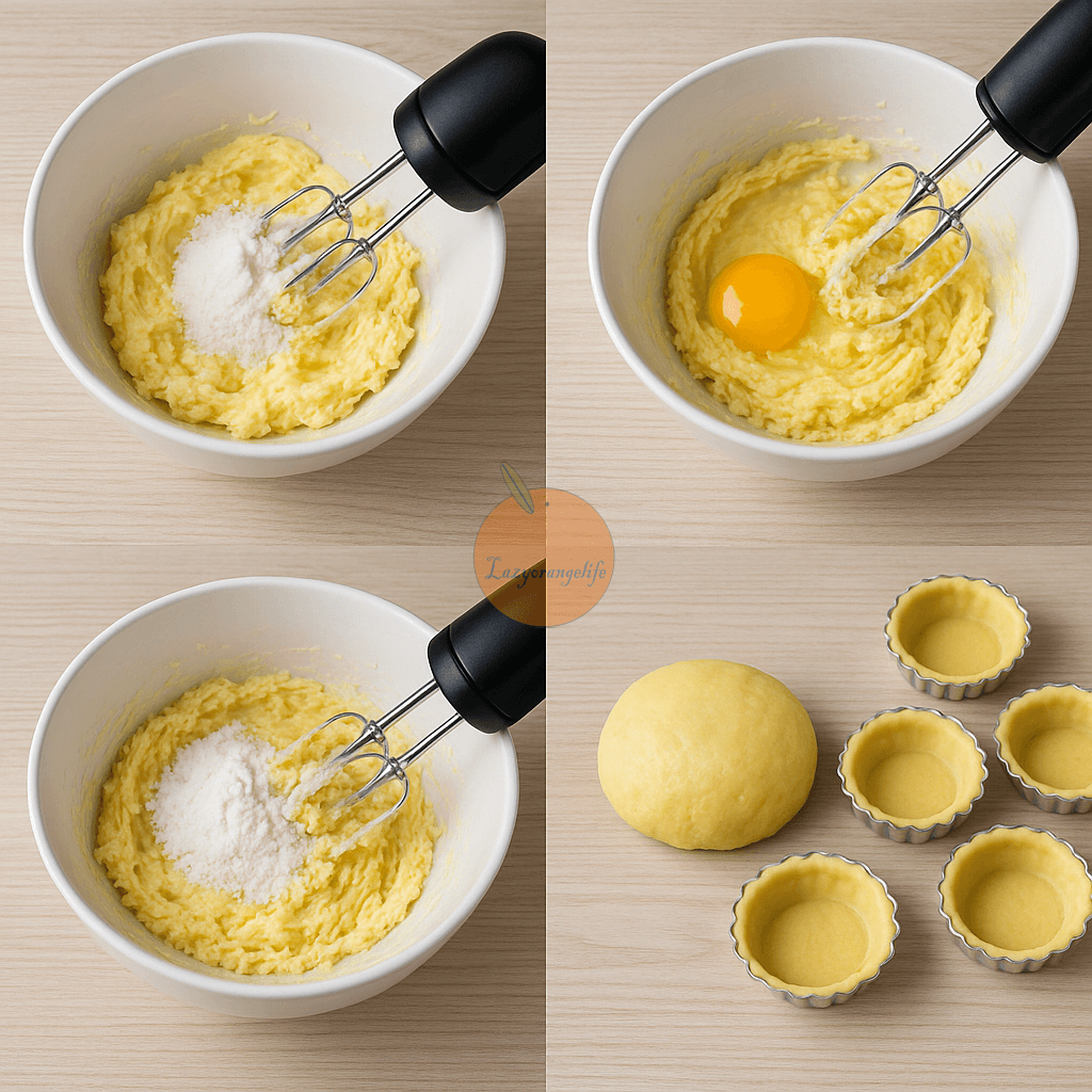 - 將蛋液倒入塔皮中,約 8 分滿。