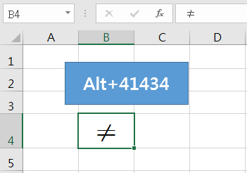 按下「Alt」鍵不放,並依序按下數字鍵「41434」,再放掉「Alt」鍵即會輸入出「≠」符號。