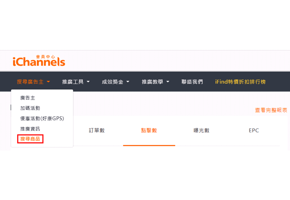 1.點選「搜尋廣告主」-「搜尋商品」,輸入想找的商品名稱。