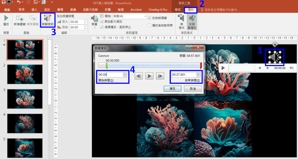 PPT投影片放映(F5)時如何自動撥放音樂?