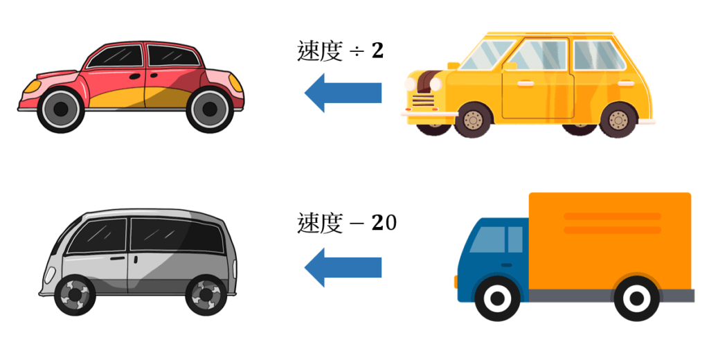 「小型車」應與前車至少保持「速度除以2」的距離,單位為公尺(m)。