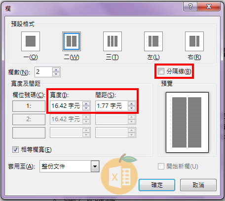 小提示:若只想讓部分段落使用兩欄,可先選取該段落再設定欄位。