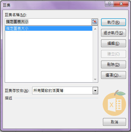 點選「開發人員」-「 巨集」或按下「Ctrl」+「F8」快捷鍵,並「執行」巨集。