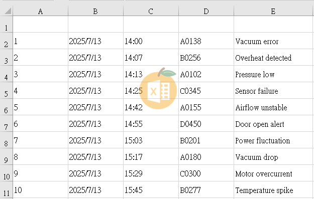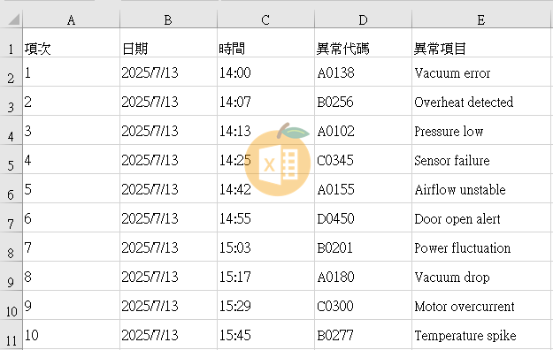headers = Array("項次", "日期", "時間", "異常代碼", "異常項目")