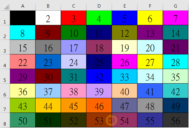 VBA我們可以使用調色盤索引值(ColorIndex)來給訂顏色,但怎麼知道各個數值代表什麼顏色呢?以下帶你簡單製作ColorIndex顏色表。