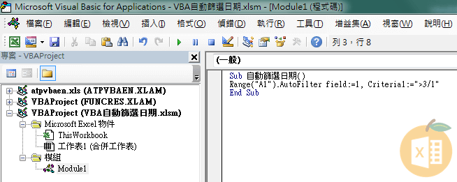 當有好幾列的儲存格資料時,我們可以用篩選(filter)功能,來快速找到我們想要看的資料,像是針對日期進行篩選,那~如何使用VBA自動篩選日期呢?