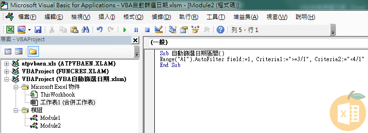 VBA自動篩選日期區間