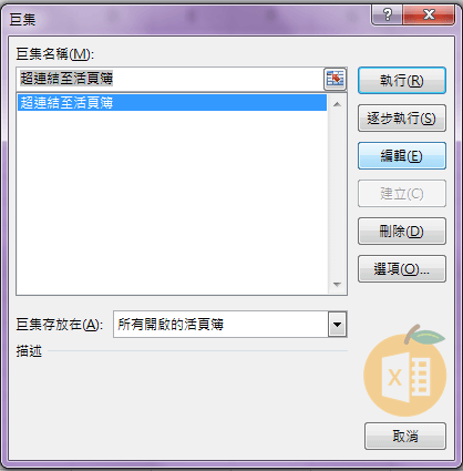 點選「開發人員」-「巨集」或按下「Ctrl」+「F8」快捷鍵,並「執行」巨集。