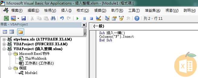 VBA插入兩欄空白欄