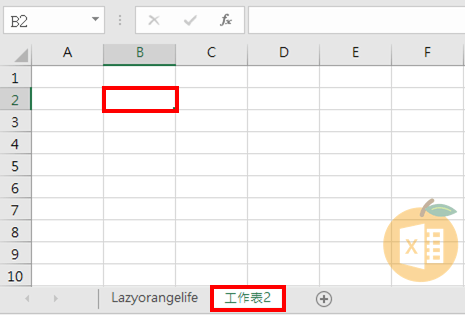執行後會看到第二個工作表被「啟用」,B2儲存格被「選取」。