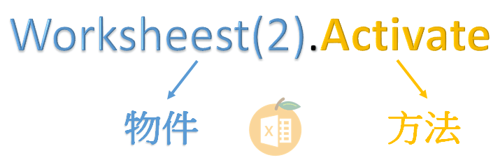 指定物件的動作稱為「方法」,如「啟用」工作表,「選取」儲存格。