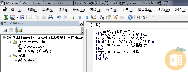 Part1 -【Excel VBA教學】入門-ElseIf條件句