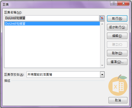 點選「開發人員」-「巨集」或按下「Ctrl」+「F8」快捷鍵,並「執行」巨集。