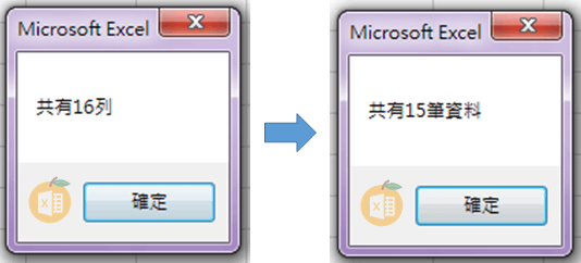‘顯示出「共有i-1列」的訊息方塊,因最後「i+1」了,扣除「1」則為總列數。