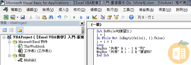 Part3 -【Excel VBA教學】入門-重複處理-Do While句