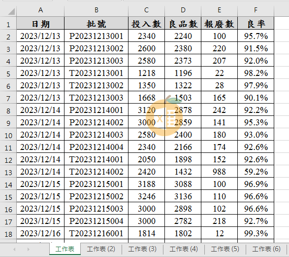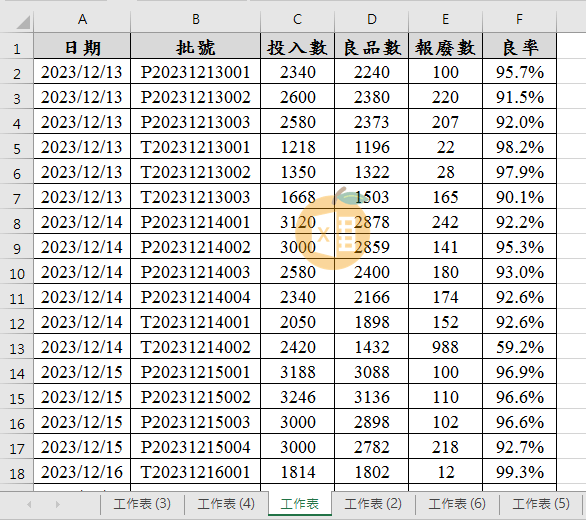執行後則快速排序工作表,如以下工作表~工作表(6)按順序排列。