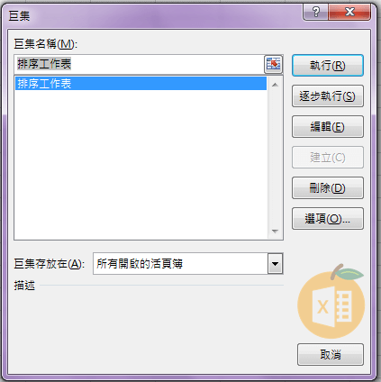 點選「開發人員」-「巨集」或按下「Ctrl」+「F8」快捷鍵,並「執行」巨集。