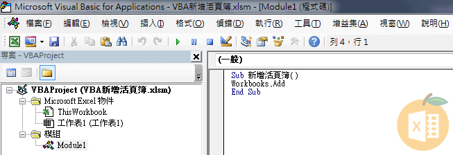 以下帶你使用VBA新增活頁簿指令,快速建立新的活頁簿。