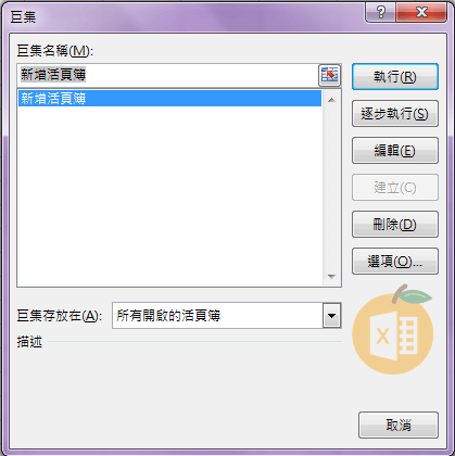 點選「開發人員」-「 巨集」或按下「Ctrl」+「F8」快捷鍵,並「執行」巨集。