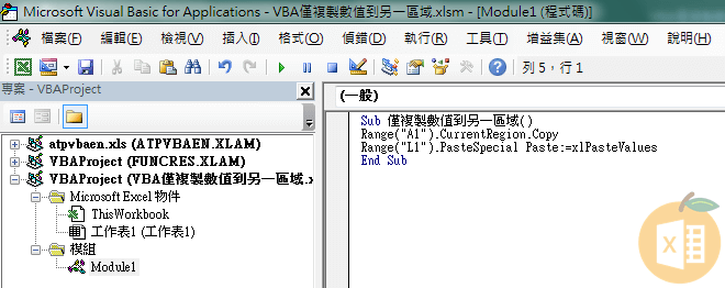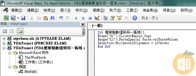前一篇有介紹到「複製目前區域儲存格」,但如果是有公式的儲存格(如下圖),VBA不複製公式僅複製數值該怎麼做呢?