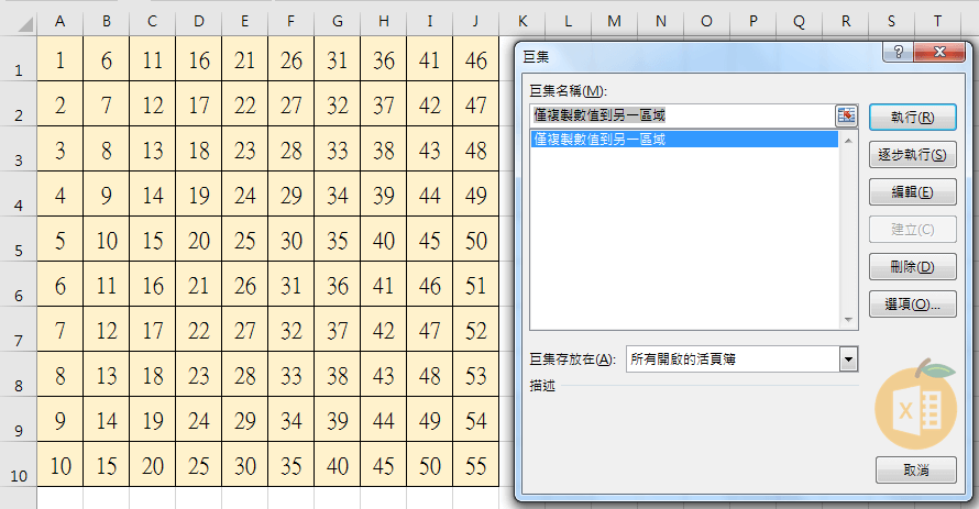 點選「開發人員」-「巨集」或按下「Ctrl」+「F8」快捷鍵,並「執行」巨集。