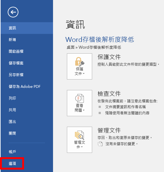 點選「檔案」-「選項」。