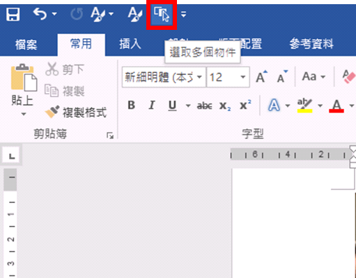 按下確定後,Word的左上角即多了「選取多個物件」功能。